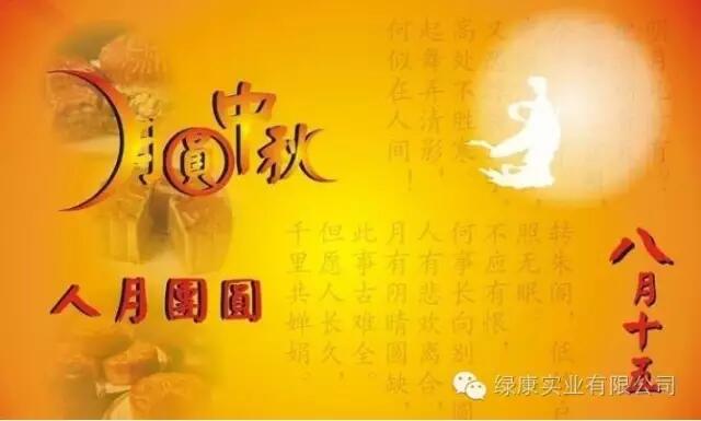 還有兩天就是農(nóng)歷的八月十五,在此佳節(jié)來臨之際,山西運(yùn)城綠康實(shí)業(yè)有限公司董事長王章修攜公司全體員工,祝愿我們的合作伙伴們佳節(jié)團(tuán)圓,家庭和睦,“月”來越好!