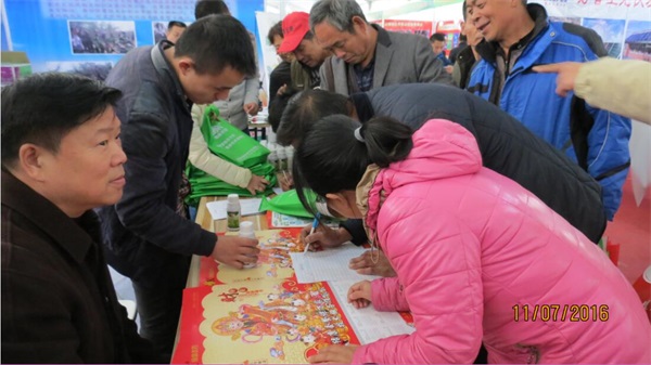 山西運(yùn)城綠康實(shí)業(yè)有限公司對(duì)這次農(nóng)展會(huì)非常重視,重點(diǎn)打造了兩大參展主題:一是在農(nóng)展館以北300米左右的農(nóng)資展廳設(shè)立了一個(gè)展位,主要用于綠康農(nóng)作物病蟲害統(tǒng)防統(tǒng)治合作社展示飛防機(jī)械:美國(guó)原裝進(jìn)口安塔瑞斯MA-34 R582XB農(nóng)藥噴酒飛機(jī)2架,同時(shí)還配備各種地面防治機(jī)械設(shè)備多臺(tái),大疆MG-1農(nóng)藥植保機(jī)三臺(tái),工作人員向前來(lái)咨詢的群眾發(fā)放相關(guān)宣傳資料,熱情詳細(xì)介紹并現(xiàn)場(chǎng)進(jìn)行試飛表演,不少群眾看完以后怦然心動(dòng),紛紛向工作人員了解價(jià)格及使用方法。二是在相鄰的農(nóng)資展館設(shè)立了一個(gè)大展臺(tái),展臺(tái)上下,綠康的各種農(nóng)藥、資料擺放整齊,工作人員在現(xiàn)場(chǎng)向果農(nóng)發(fā)放資料袋,內(nèi)裝有相關(guān)農(nóng)藥的性能、用途等宣傳資料,附贈(zèng)有一張財(cái)神爺?shù)哪戤嫛V睜I(yíng)部的劉杰一經(jīng)理耐心的手把手教給果農(nóng)掃描年畫下方的二維碼,并接受果農(nóng)現(xiàn)場(chǎng)技術(shù)咨詢,綠康工作人員誠(chéng)懇的態(tài)度和周到的服務(wù)受到參展果農(nóng)的一致好評(píng)。